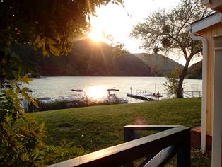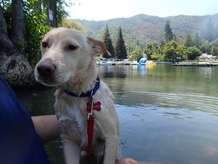 Oh, how did Chewie like his first family vacation and how did he do?? He was AWESOME! He was mellow, quiet in the rooms, but playful when people wanted to engage him. The first night there he met a friend and they played Wednesday night and Thursday morning. Chewie even swam in the lake and I got him to walk from shore into the lake on his own (a big step since he has been terrified with water). When we went out for dinner we sat outside and they brought us a bowl of water and a dog biscuit at the Blue Wing Restaurant in Upper Lake. Being a puppy, Chewie slept the days away, but he had a blast too!