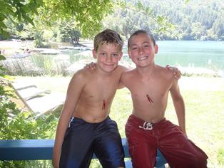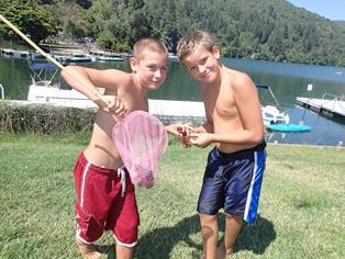 When we arrived at the lodge on Wednesday Christian was… Christian --- meaning he went out and found other kids to socialize with. He went swimming and met four other kids, all younger, and they played in the water a couple of hours. They were leaving as we were heading out to dinner. When we got back, Christian went back outside and met another kid --- a kindred spirit! For the next three days they became very close friends, swimming, fishing, crawdad hunting, kayaking, rope swings, boating, etc… They became inseparable – and now Christian has a pen pal as we exchanged contact info so we can all stay in touch. Meeting his new friend and hanging out with him is what made this trip the best ever for Christian.